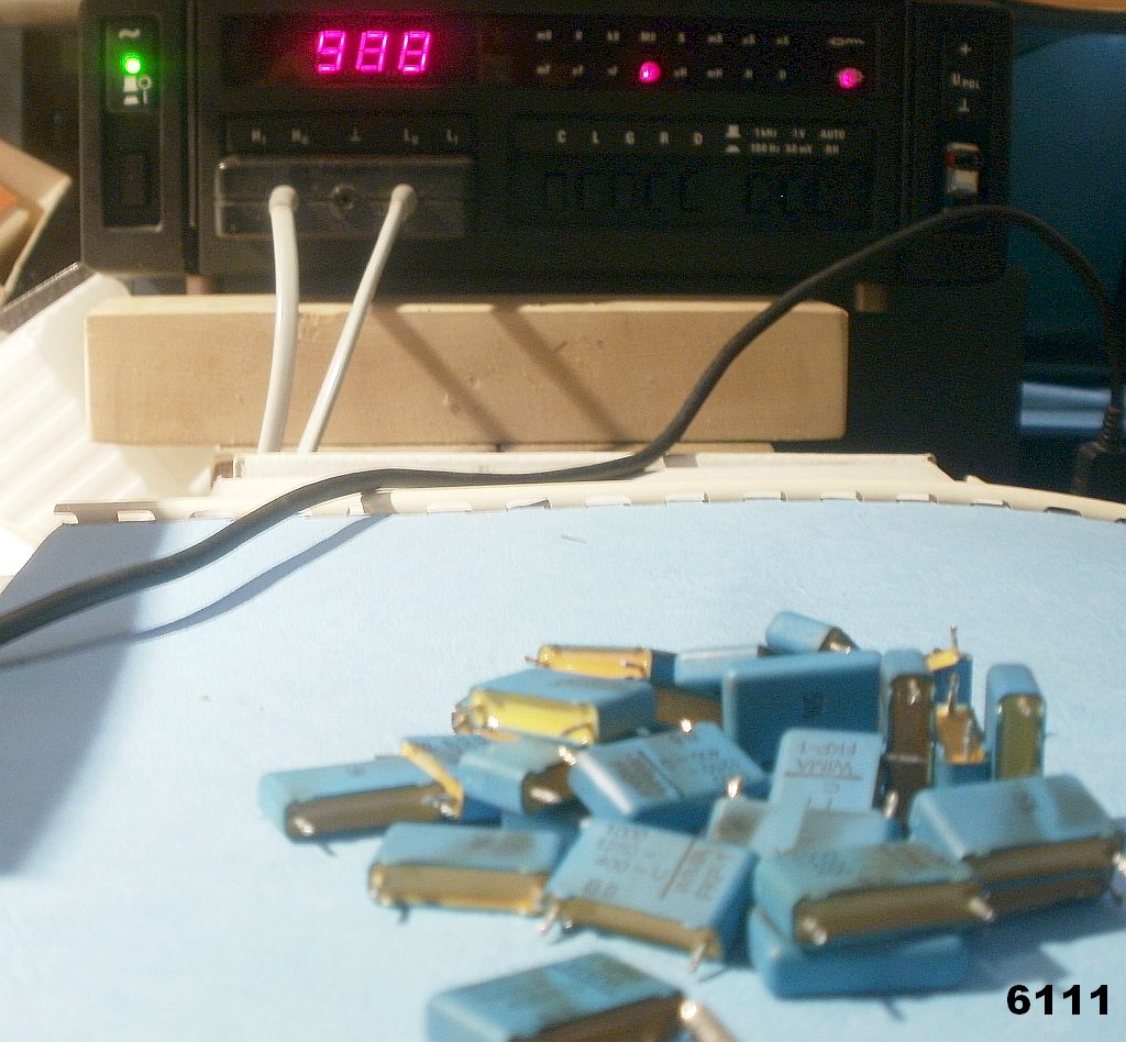 U elektrolytických kondenzátorů je patrný pokles kapacity o cca 15-20%, u ostatních kondenzátorů jsou hodnoty v pořádku. Rovněž tak u odporů a cívek. U polovodičových součástek jsem kontrolu neprováděl. Vzhledem k prodejní ceně to nepokládám za nutné.